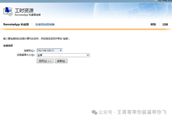 打开浏览器输入https://192.168.100.13/RDweb (必须采用https)。