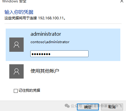 输入有权限登录的账户,我们输contoso\administrator