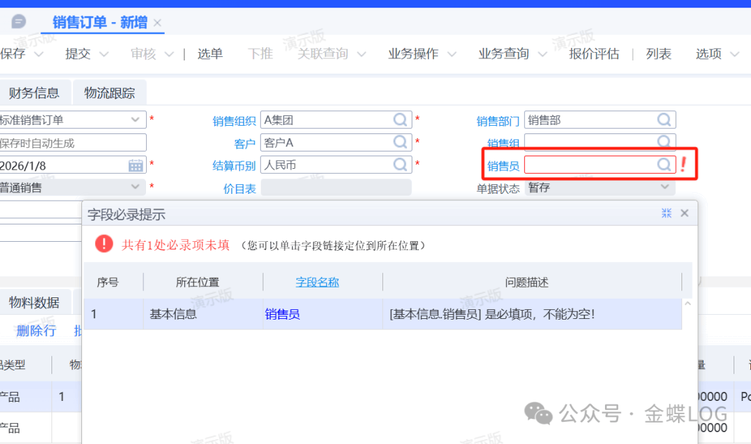 在平时下【销售订单】的时候,没有选择销售员系统是不允许保存订单的。那么,销售员,采购员、仓管员等这些业务人员要怎么加进系统呢?