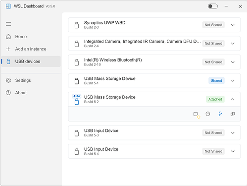 新版本v0.5.0 功能预告:USB设备管理(基于usbipd-win将windows系统插入的usb设备,提供给WSL2中的linux使用)