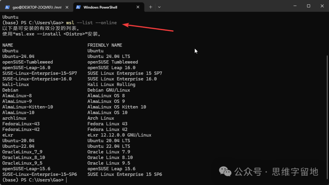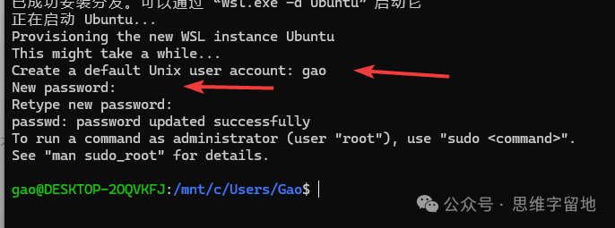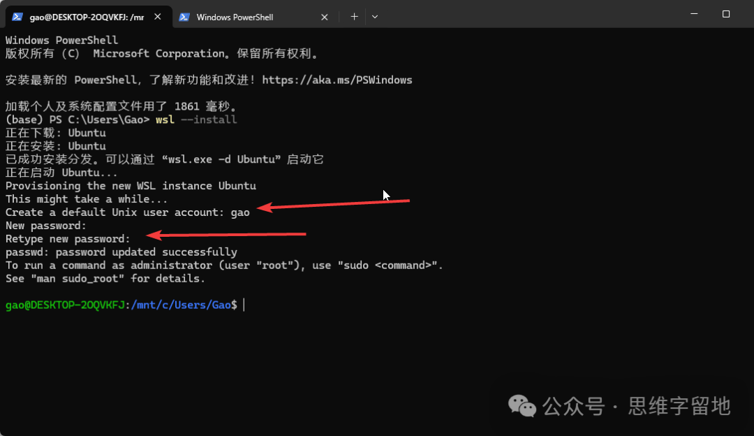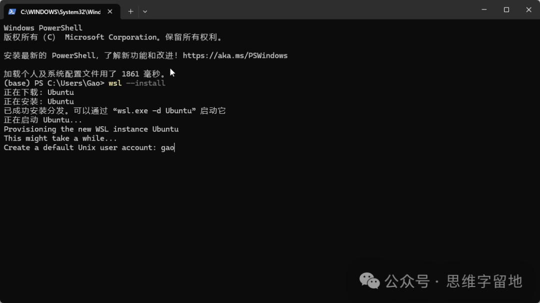 wsl 全称是 Windows Subsystem for Linux。 看名字就可以想到,这是 windows 系统中的 linux 子系统。 简单来说,就是在你的win系统中,安装一个Linux。 该工具的底层逻辑本文就不分析了,读者可以自行查阅。本文直接讲怎么用: wsl的安装用管理员角色运行PowerShell。 输入wsl --install ![]() 没错!就这一条指令就可以了。 安装完成之后,需要重启你的计算机。因为一些底层功能需要重启才能生效。 linux系统的安装有了工具还不够,因为工具只是一个平台,我们还需要在平台上搭建系统。 下面分享三种安装方式: 1、默认安装wsl --install指令其实已经默认帮我们安装了一个Ubuntu系统。 你需要输入用户名以及密码来配置这个Ubuntu系统。 ![]() ![]() 但是,因为网络问题或者其它原因,这个Ubuntu系统不一定能安装成功。 如果不成功的话,你可以参考下面两种方式。 2、指令安装输入wsl --list --online指令,查看可以安装的操作系统。 ![]() 选择一个操作系统,例如 Ubuntu-22.04。 输入wsl --install -d Ubuntu-22.04 请注意:因为网络问题或者其他原因,这个方式可能依然会失败,如果失败了,你可以参考最后一种方式 3、store安装打开你的 win 系统的 store 商城。 ![]() ![]() ![]() 然后,搜索Ubuntu,选择其中一个开始安装。插句题外话:安装任何工具,建议安装带有 LTS 后缀的版本,因为这是官方发布的、长期维护的版本。 linux启动安装 linux 系统成功之后,我们尝试启动它。启动 linux 的方式有如下两种: 1、命令行启动输入wsl --list查看已安装的linux系统。 ![]() 输入 wsl -d Ubuntu-22.04 启动指定的操作系统。 第一次进入系统的时候,会让你输入用户名和密码,跟着提示操作就可以了。 ![]() 2、图形化启动你可以在开始菜单找到对应的图标,鼠标点击启动。 ![]() 另外,如果想退出 linux 系统,回到win系统的话,就输入exit即可。 linux系统卸载如果这个系统不想要了,可以通过以下两种方式删除: 1、store卸载如果你的linux系统,是通过store安装的,你可以在store工具中卸载。如下所示: ![]() 请注意,这个方式是无法将linux系统完全清理干净的,因为你本地依然保留了已经下载好的linux系统。 所以,你需要执行下面的操作。 2、指令卸载命令行输入 wsl --unregister Ubuntu-22.04。 ![]() 可以看到,对应的linux系统已经被清理干净了。 以上就是 wsl 工具安装、启动、卸载的基本操作,有了 wsl,再也不怕把电脑搞乱了,快来试一下吧!! 阅读原文:https://mp.weixin.qq.com/s/P_1qFSwptHooIaUQ0Uavew 该文章在 2026/3/4 15:33:33 编辑过 |
