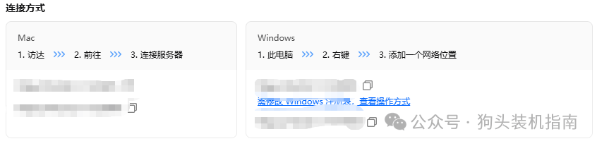 配置建议仅开启 SMB2.0/3.0 版本,关闭 SMB1.0 版本; 群晖等 NAS 中开启” 启用 Opportunistic Locking” 提升传输性能;Windows 端可开启 SMB 直通和多通道功能,降低 CPU 占用、提升吞吐量; 根据使用需求配置用户权限,避免过度开放访问权限。 二、WebDAV(Web Distributed Authoring and Versioning)基于 HTTP/HTTPS 的扩展协议,专为广域网远程访问设计的文件管理协议 优势劣势局域网传输效率低,速度和延迟表现不如 SMB、NFS,小文件频繁操作体验差; 部分老旧软件对协议支持不佳,无法正确处理文件锁,多人协作易冲突; 大文件远程传输稳定性一般。 适合远程办公 / 外出时跨公网访问 NAS 文件; 手机相册、笔记、密码库等内容自动同步至 NAS; 配合工具将远程 NAS 映射为本地磁盘。 使用方式Windows:映射网络驱动器,输入https://your-nas.com/webdav; macOS:Finder→前往→连接服务器,输入https://yournas.com/webdav; Linux:执行命令 mount -t davfs https://your-nas.com/webdav /mnt/webdav; Android:使用 Davx⁵等专用 App; iOS:使用 GoodReader 等专用 App。