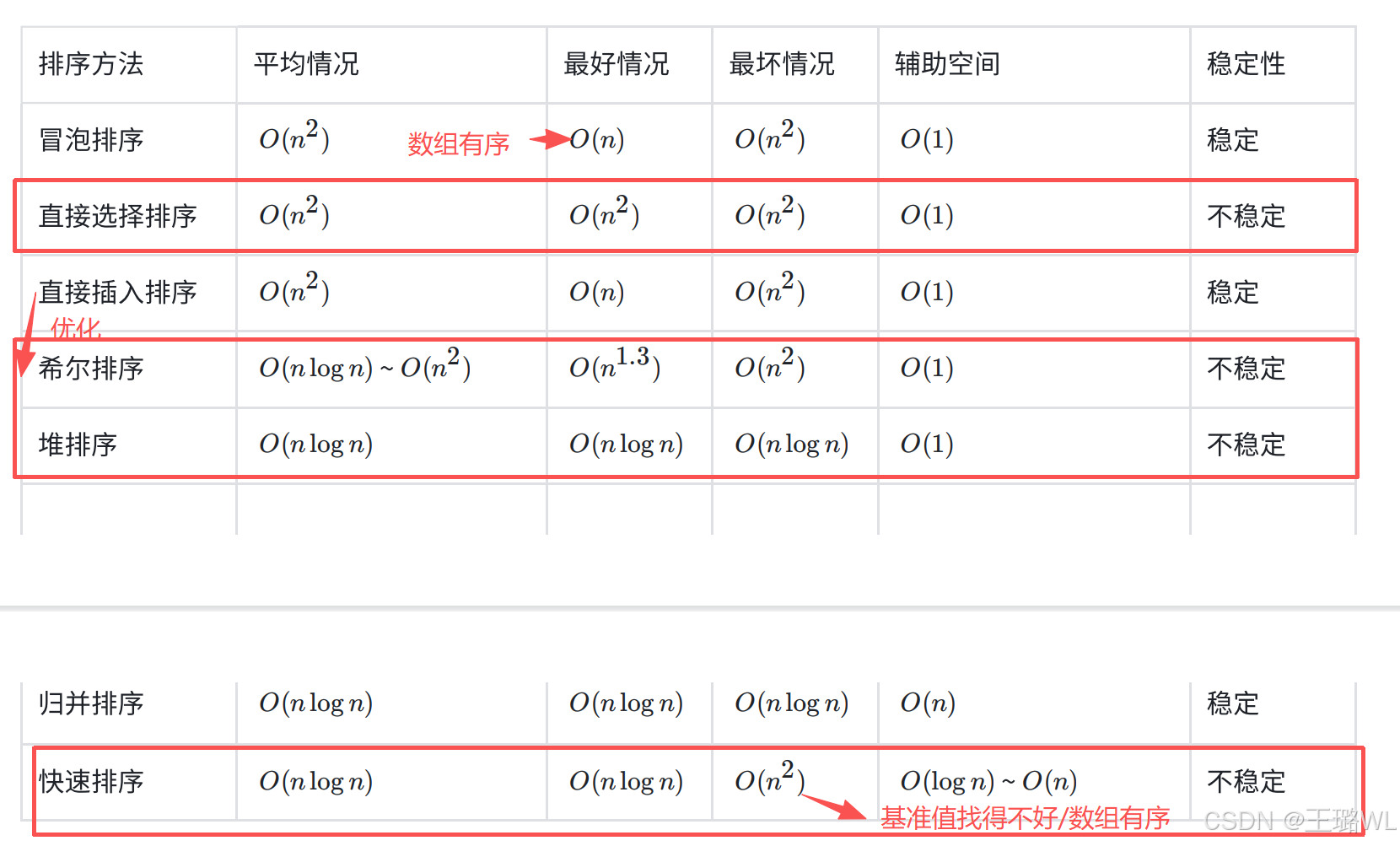 - 时间复杂度:O(n2) 【最差情况:1+2+……+n-1,最好情况(O(n)):1+1+……+1】