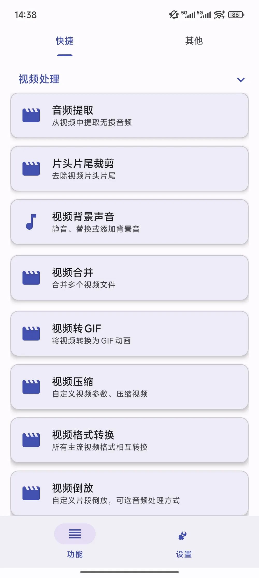 对于小白来说平时处理视频和图片是个麻烦事! 比如想把演唱会视频提取成音频,或者把老照片弄清晰点,网上找的工具要么功能要会员,要么操作复杂到劝退;更别说批量处理视频了。 这次分享迷要给安卓党们分享一个集视频、音频、图片处理于一身的宝藏工具,功能全到离谱,关键是纯免费——Atool 首先来看看这款工具的功能有多么齐全: