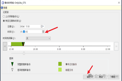 RESTORE LOG OnlyEdu_ETSFROM DISK='D:\Backup\OnlyEdu_ETS_log.trn'WITH STOPAT = '2024-XX-XX 15:05:00',RECOVERY