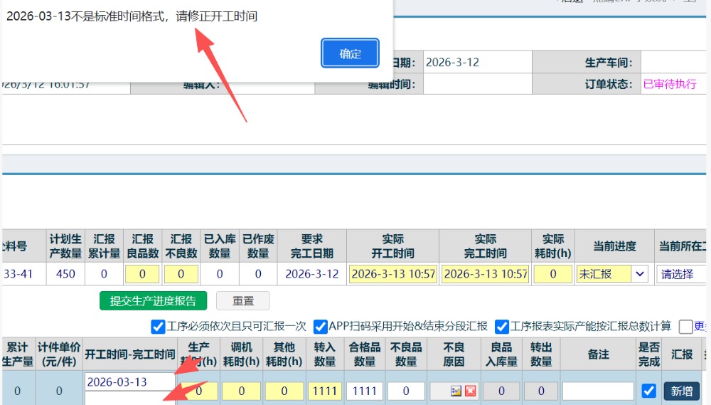:ERP电脑端做工序汇报提醒时间格式不一致,如何使用正确的时间控件?