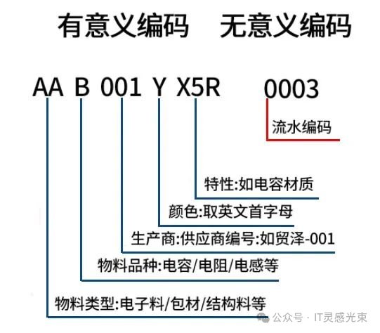 优点是可读性强,不用查系统就能大致判断物料属性,老员工用起来很顺手。缺点是编码会变得很长,而且一旦属性变化(比如改了规格),编码就得跟着改,牵一发而动全身。