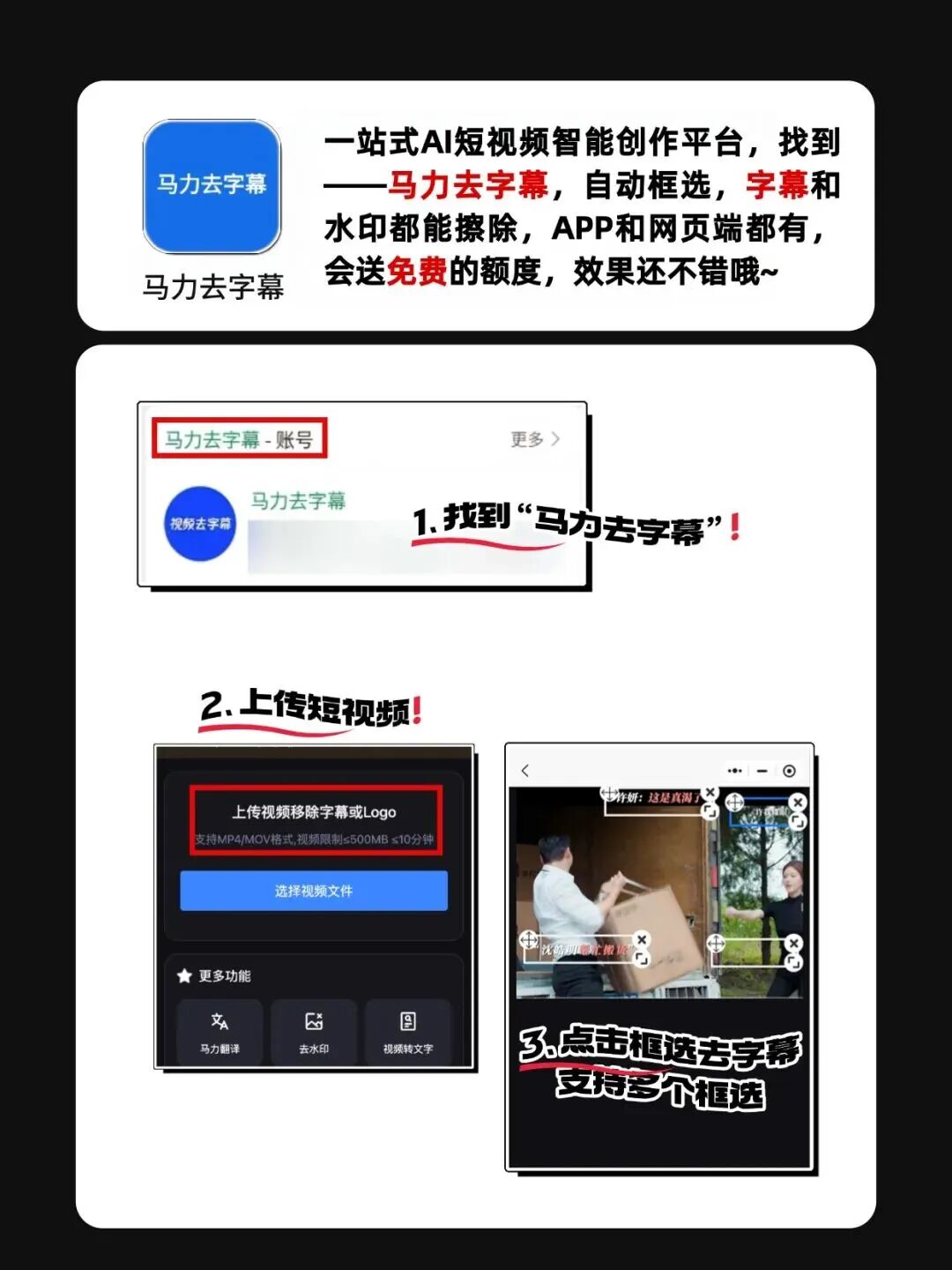 今天我就用这篇干货,跟大家掏心窝子分享5个亲测有效的方法。其中有一个神器,是我最近用了就离不了的,我会把它放在第一个重点聊,也会客观告诉你它好在哪、以及什么情况下选别的更合适。 方法一:马力去字幕——省心的“傻瓜式”操作(强烈推荐)咱们直接上硬菜。如果你和我一样,既没有专业剪辑基础,也不想为了去个水印下载几十个G的大型软件,那“马力去字幕”绝对是个惊喜。 传送门入口:免费体验入口