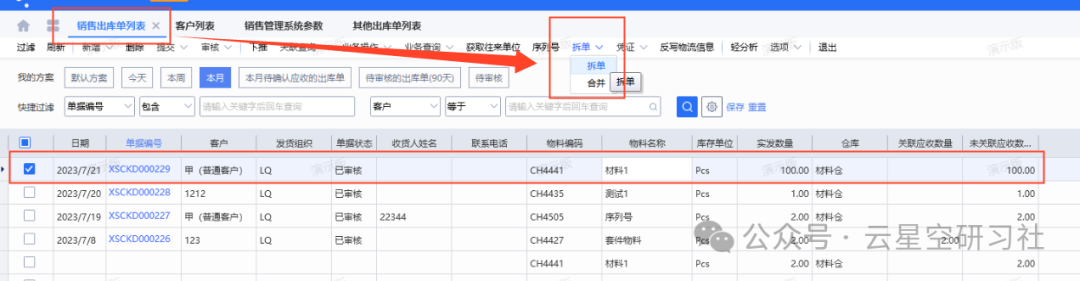 场景③:审核中的销售出库单,怎么拆单?