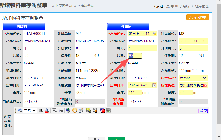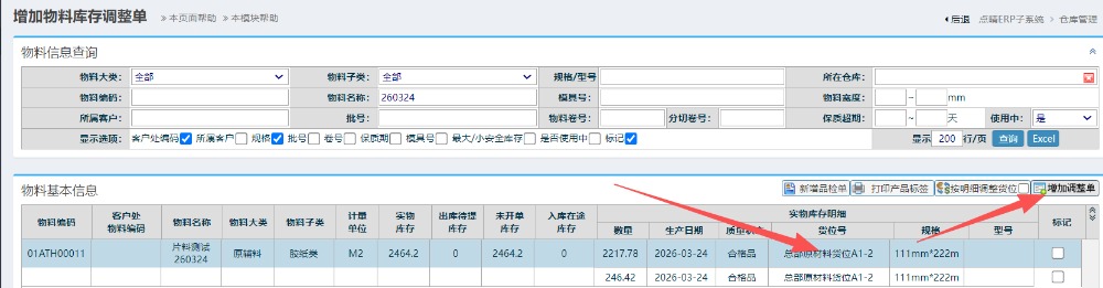 点晴模切ERP在库调整-片料库存拆分如何操作?