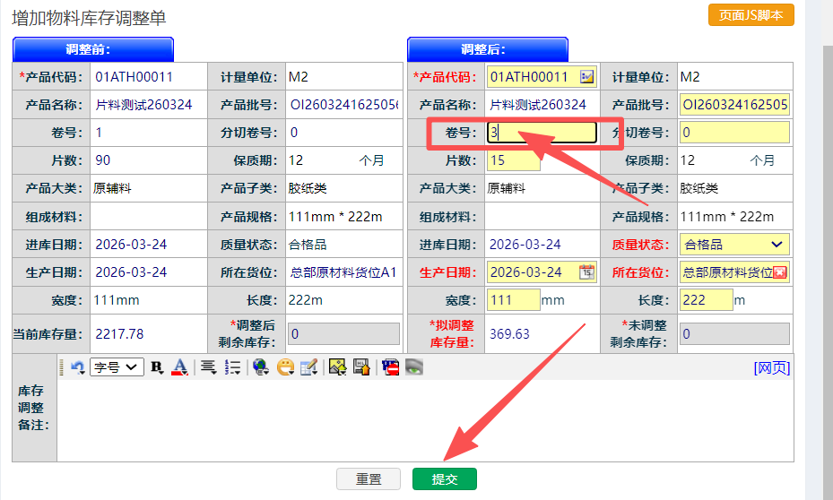 :ERP在库调整-片料库存拆分如何操作?
