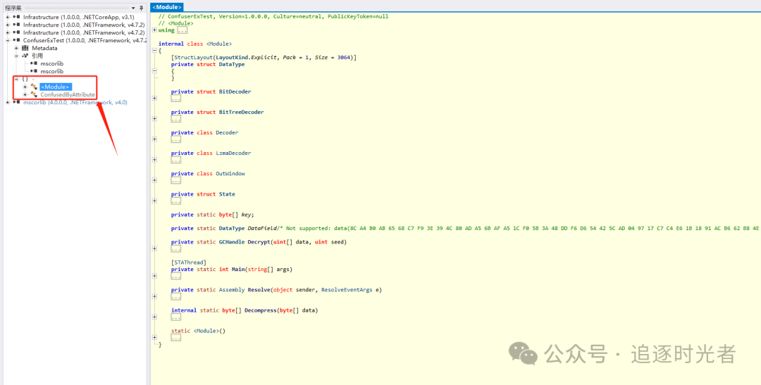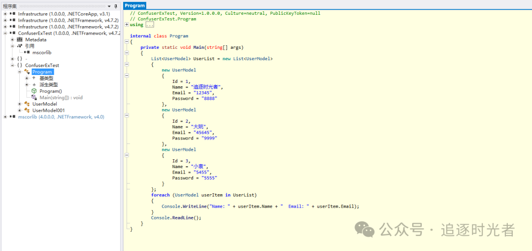 ILSpy查看混淆前后的.exe文件对比混淆之前: