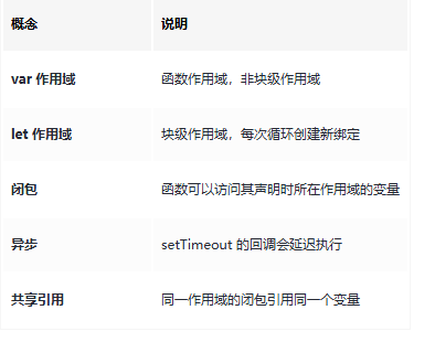 console.log('i=', i) // ← 所有回调共享同一个 i