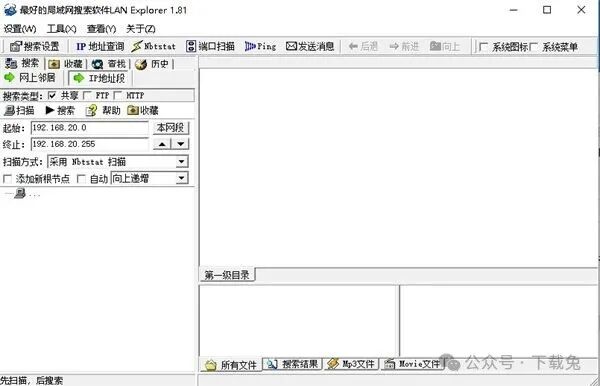 这货搜局域网资源又快又方便:多线程扫所有工作组、主机、打印机、共享文件,可按网上邻居、工作组或IP段自动搜mp3、电影,也支持自定义搜索。内置nbtstat,扫IP段拿主机名、工作组名、用户名、MAC地址速度极快,扫描结果还能存成文本或Excel