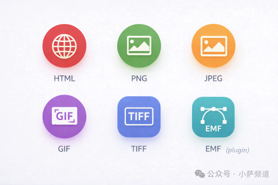开源版默认支持导出的格式:HTML、BMP、PNG、JPEG、GIF、TIFF、EMF