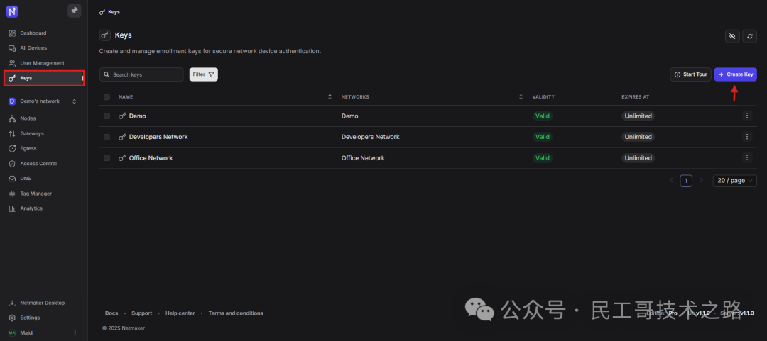 Netmaker 支持一键创建多种类型的 WireGuard 网络,包括远程访问网关、Mesh VPN(全互联网络)、站点到站点 VPN 等。用户无需手动配置复杂的网络参数,只需简单操作即可完成网络部署。