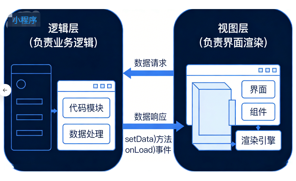 小程序采用了独特的双线程架构,即逻辑层和视图层分离。逻辑层负责处理业务逻辑,由 JavaScript 代码驱动;视图层则负责界面的渲染和展示,通常由 WebView 来实现。这种架构使得逻辑层和视图层之间需要通过数据传输来进行通信。