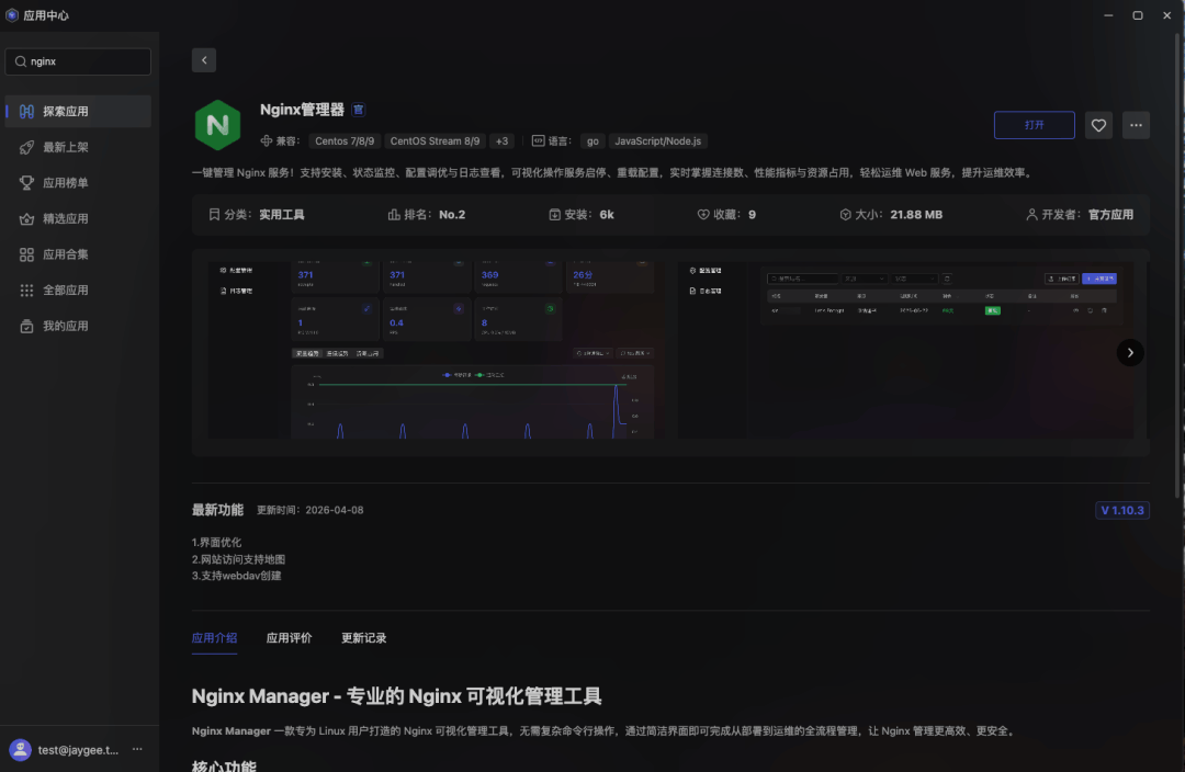 它适合用于企业文件共享、团队协作空间、测试环境文件分发、个人云盘场景,以及需要为不同客户或业务快速分配独立文件访问入口的平台型服务。1.打开GMSSH应用中心安装nginx管理下载安装3.新增一个webdav模块,输入表单完成创建,设置要共享的目录4.到另外一台服务器测试挂载(linux机器为例)sudo apt install davfs2sudo yum install davfs2sudo dnf install davfs2