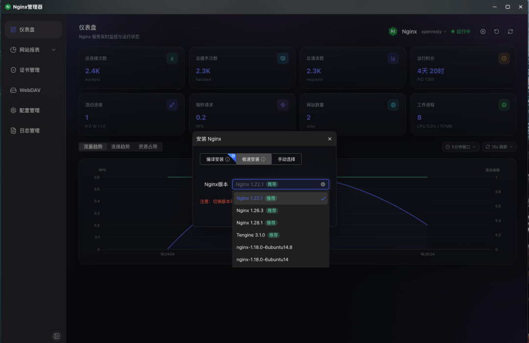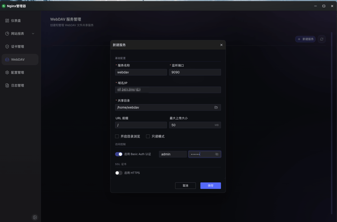 在云存储、远程协同与跨端文件管理日益普及的今天,WebDAV 已成为连接各类客户端与文件服务端的标准协议。然而,传统基于 Nginx 的 WebDAV 部署高度依赖手动编写配置文件,操作门槛高、迭代效率低,且难以满足多租户、动态权限与快速交付的现代运维需求。为此,GMSSH推出 「Nginx WebDAV 可视化创建」 功能,将繁琐的协议配置、用户鉴权与存储路径管理转化为直观的图形界面。用户只需通过点击与表单输入,即可“所见即所得”地完成 WebDAV 服务的创建、权限分配与热部署,真正实现低门槛、高效率、可追溯的云端文件协同管理。- 快速创建 WebDAV 服务,一键完成目录映射、访问路径和基础配置生成;