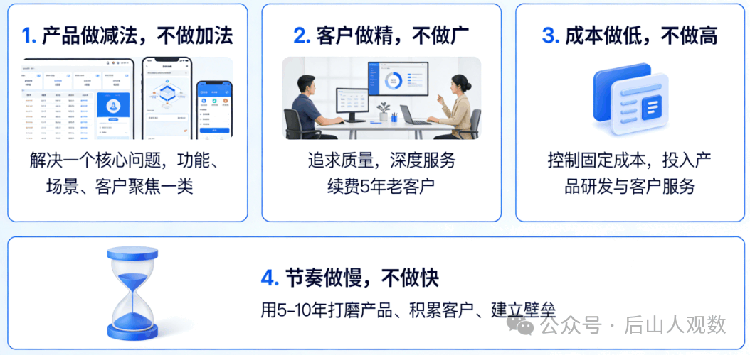 你不是Salesforce,你不是IBM,你不是金蝶。你不需要成为下一个谁,你只需要成为你自己——一家能赚钱、能活下去、能让团队安身立命的公司。