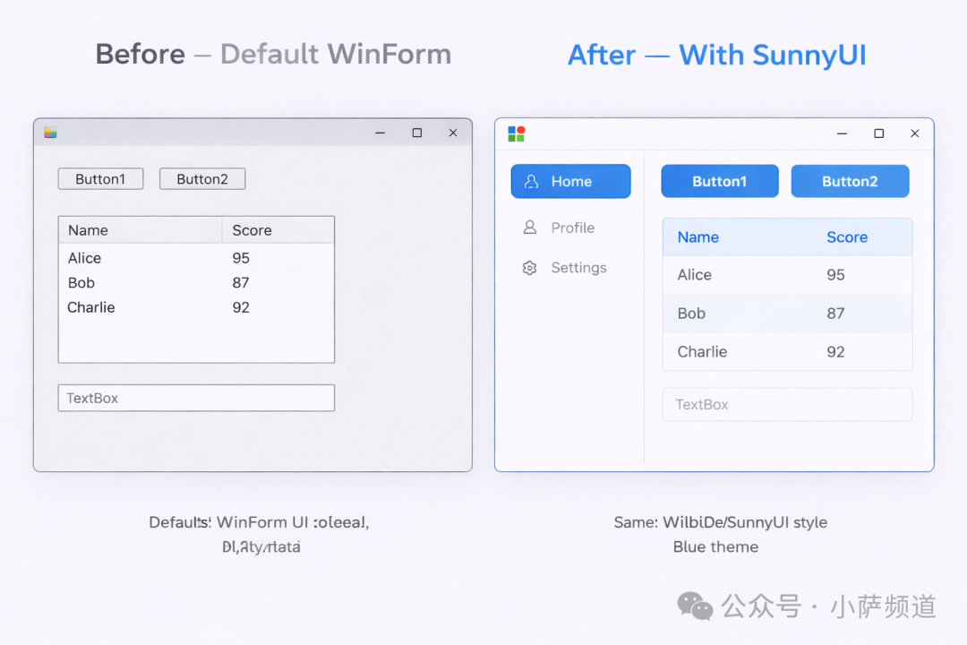 简单说:它让 WinForm 的界面,可以做到不输 WPF,甚至在一些场景下更简洁。