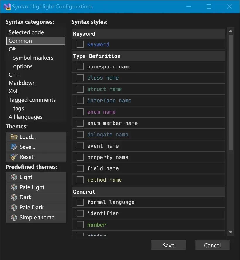 • 支持自定义语法高亮样式,包括 Visual BASIC、F#、SASS 等多种语言。