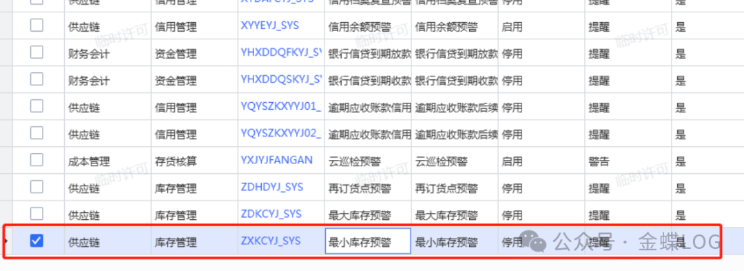 如果物料勾选了【最小库存预警】,并且监控方案里面启用最小库存预警监控服务。当库存数量低于设定阈值时,系统会自动发送消息提示,告知对应的用户。