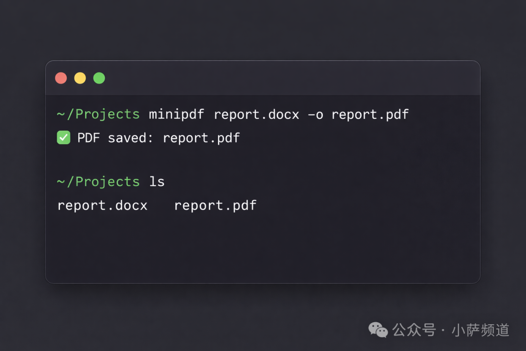 CLI 工具:不服上命令行不想写代码也行。装个 CLI 工具: 然后: 就这些。不需要安装 Office 或 LibreOffice,不需要任何外部依赖。