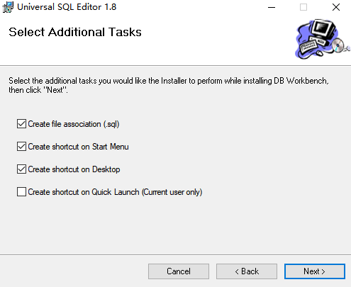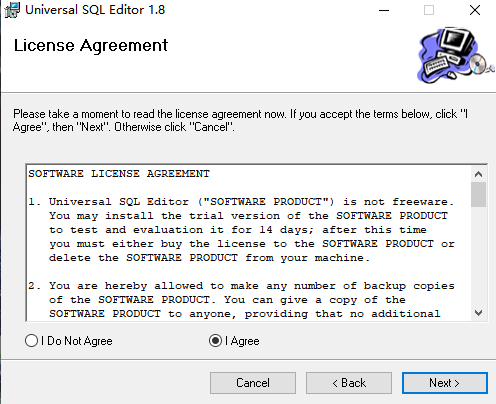 安装UniversalSQLEditor的第一步是解压数据包,双击“UniversalSQLEditorSetup.msi”打开安装向导并点击“next”,接着勾选同意相关协议,再选择需要的安装组件和软件功能