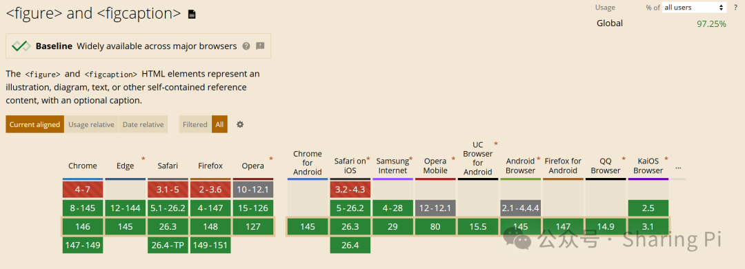 <figure> 和 <figcaption> 自 HTML5 起被所有现代浏览器广泛支持,如图: