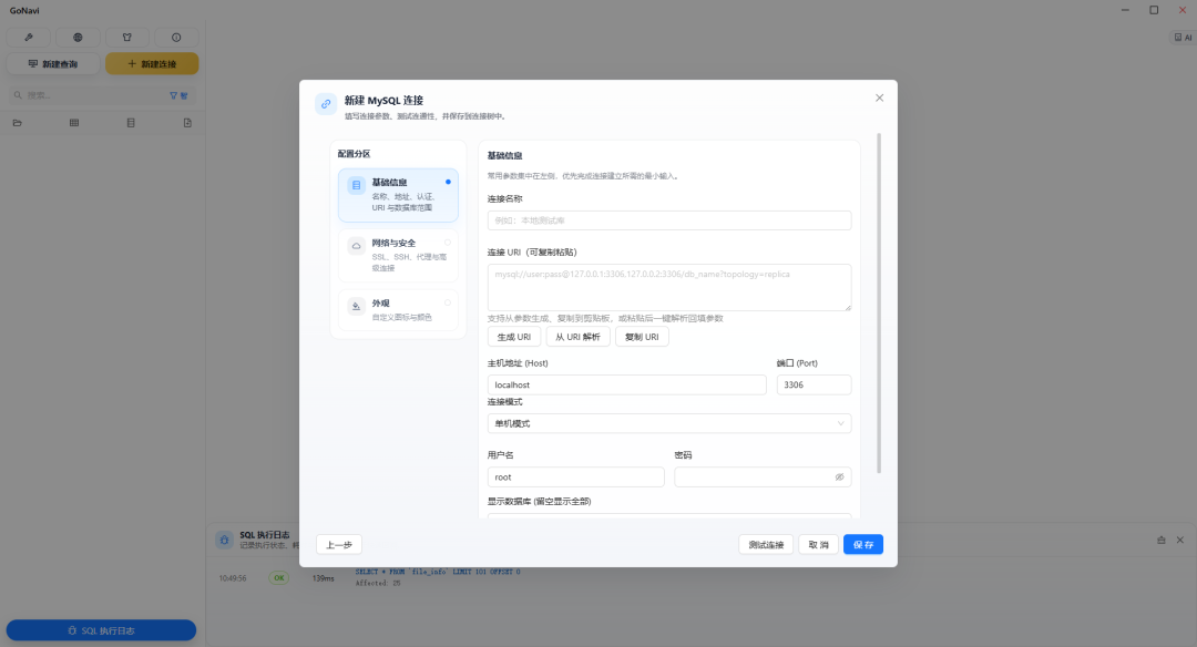 - 「安全便捷的连接能力」:支持 SSH 隧道、代理连接、URI 解析与生成,连接配置可导入导出,方便多设备同步