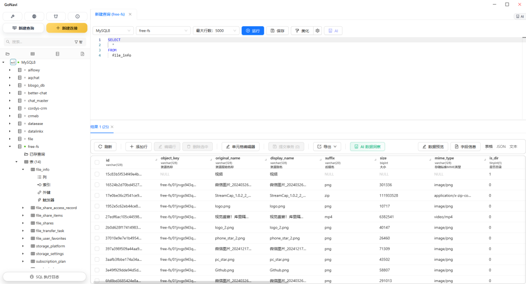 - 「极致轻量」:基于 Go + Wails 开发,告别 Electron 臃肿卡顿,启动快、内存占用低,大数据表操作流畅不卡顿