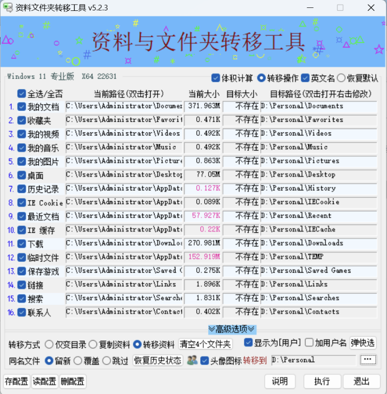[点晴永久免费OA]Windows系统资料文件夹转移工具,仅550KB大小