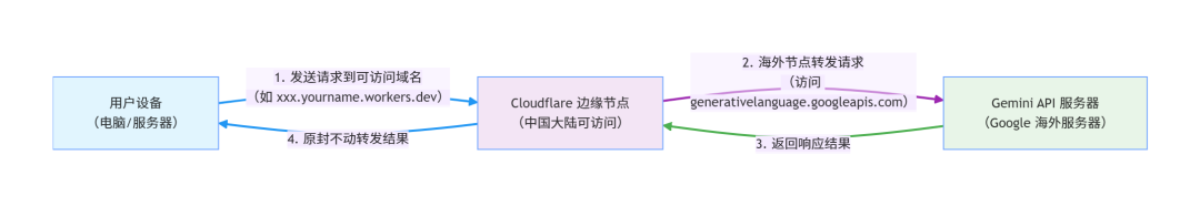 由于某些原因国内朋友访问不了gemini的,文章亲自验证了一遍,用CloudflareWorkers免费搭建GeminiAPI代理,实现国内稳定访问,下面开讲。一、核心原理:反向代理(ReverseProxy)简单来说,就是把Cloudflare当作一个“中转站”。我们遇到的问题是:我们的设备(电脑、服务器)无法直接访...