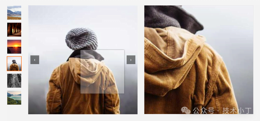 在现代电商网站中,商品图片的细节展示对于提升用户体验和促进购买决策至关重要。放大镜效果作为一种经典的商品图片展示方式,能够让用户清晰地查看商品的每一个细节。本文将详细介绍如何使用HTML、CSS和JavaScript实现一个功能完整的商品图片放大镜效果。效果演示该放大镜功能主要包括以下几个交互体验:左侧缩略图列表,支持...