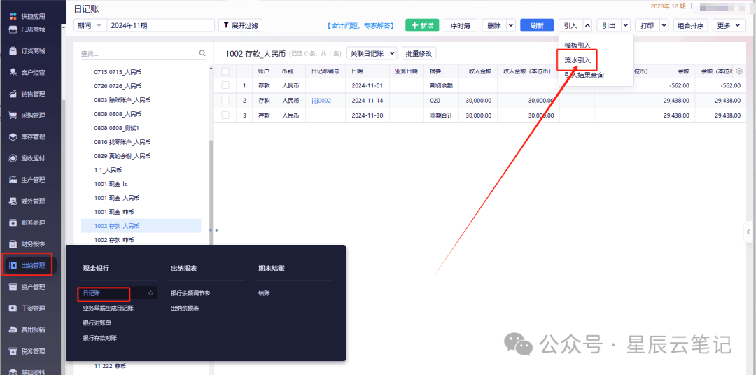 【问题描述】流水导入后可以直接生成凭证吗?【解释说明】流水数据导入后,可以进行凭证的生成操作,但是不同模块在生成凭证时的操作流程会有所区别。【操作步骤】如果系统有出纳模块,可以在“出纳管理-日记账”界面直接导入银行流水。然后打开导入的流水数据,维护好日记账的对方科目。如果是多个日记账需要对应同一个对方科目,也可以勾选多...