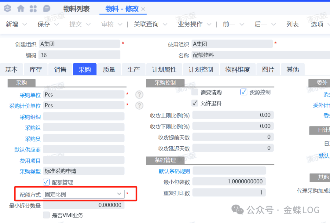 Q问题描述在企业的采购业务中,将一笔采购需求按照一定的比例自动分配给多个供应商,是常见的货源管理需求。那么在系统中应该要如何操作实现这种需求呢?本次我们便来学习配额下单中的第三种方式——【固定比例】。学完本篇文章,您将学会:①物料配额下单“固定比例”的作用②物料配额下单“固定比例”的实操案例​ A问题解答一、什么是配...