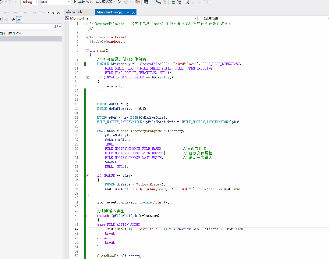 最近在做虚拟打印机时,需要实时监控打印文件的到达,并移动文件到另外的位置。一开始我使用了线程,在线程里去检测新文件的到达。实际上Windows提供了一个文件监控接口函数ReadDIrectoryChangesW。这个函数可以对所有文件操作进行监控。ReadDirectoryChangesW函数声明BOOLReadDir...