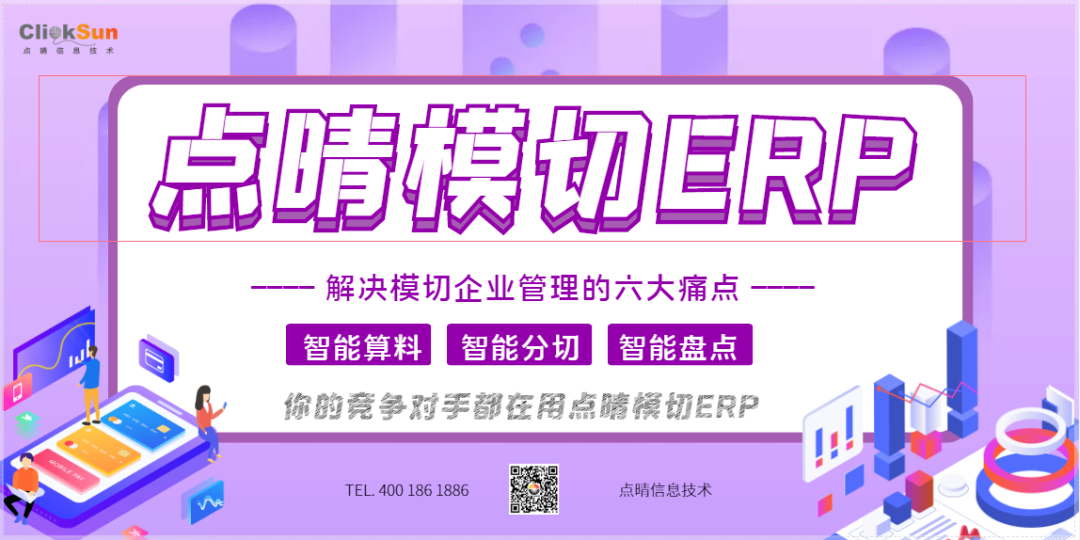 众所周知,点晴模切ERP系统是有着18年丰富经验的ERP软件商,引用先进的技术用于解决模切企业在管理上的痛点。一些常见的生产现象,如生产计划执行不到位、生产部门之间半成品堆积、产品质量异常等生产问题,都可以通过点晴模切ERP解决。点晴模切ERP从2004年就开始针对模切行业的管理痛点研发并且不断完善,是一款专门针对模切行业研发的ERP系统,从基础数据、销售、采购、生产、仓库、工程、品质、财务形成闭环式管理,帮助模切工厂解决交付期拖延,减少模切物料的耗损,工人和设备效率低,生产过程不透明等生产问题,为模切企业提供一整套信息化解决方案,完美解决遇到的管理痛点。由此可见,作为一家模切企业,在选择ERP系统时优先考虑针对性强的点晴模切ERP系统显得顺理成章了。