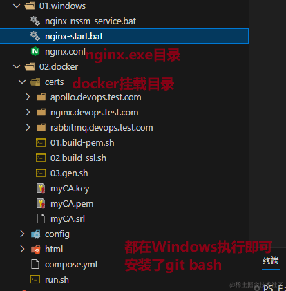 相关脚本汇总 脚本本地目录预览,添加了系统判断 linux,执行需要给要执行的脚本添加执行权限:chmod +x ./01.build-pem.sh
