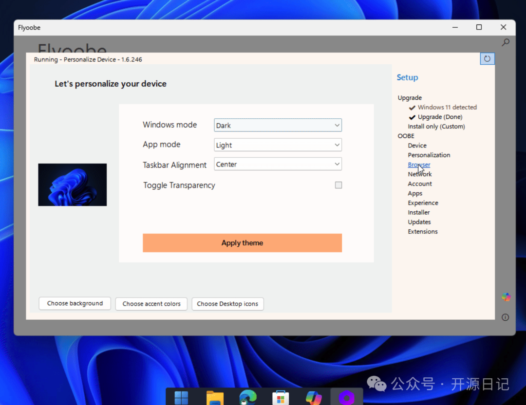 2.下载后,直接运行主程序,按照步骤选择需要升级或安装的 Windows 11 系统包。- 3.Flyoobe 会自动处理硬件校验,并提供优化选项。整个流程极简,即便是“小白”也能轻松上手。