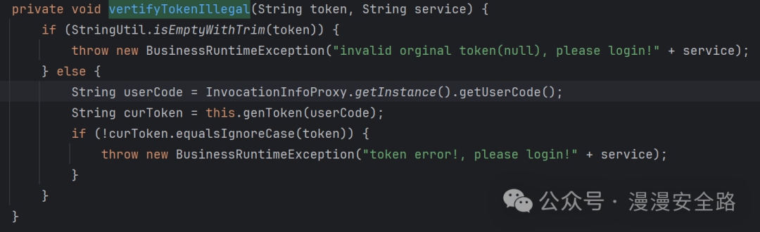 如果service或者clientIP在可信列表里则直接不进行token验证,然后看vertifyTokenIllegal怎么验证token