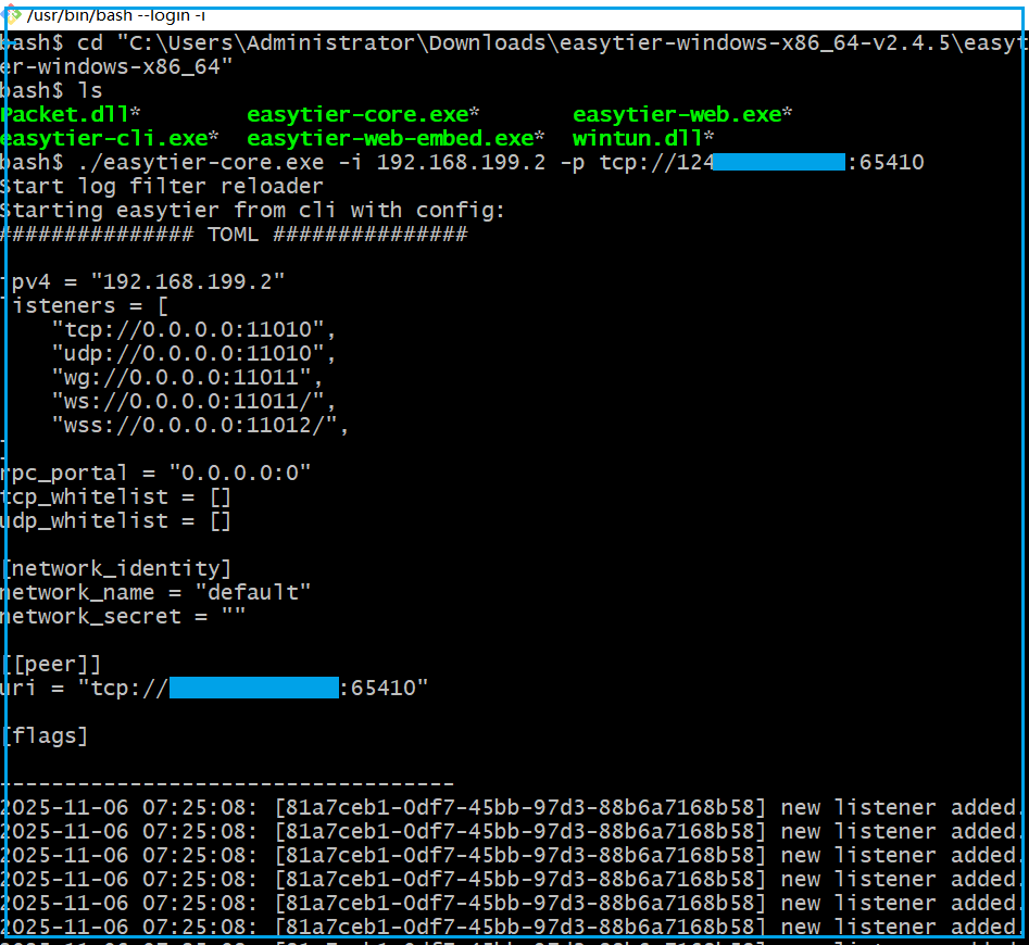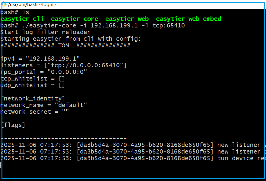 ./easytier-core -i 192.168.199.1 -l tcp:65410