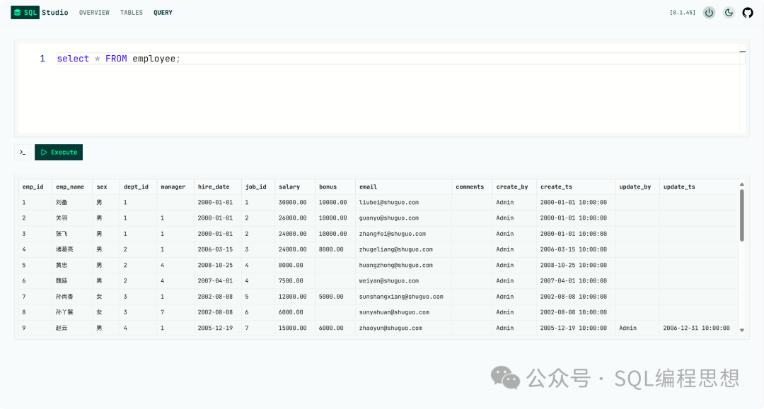 SQL Studio 是一个免费开源、基于 Web 浏览器的轻量级数据库查询工具。